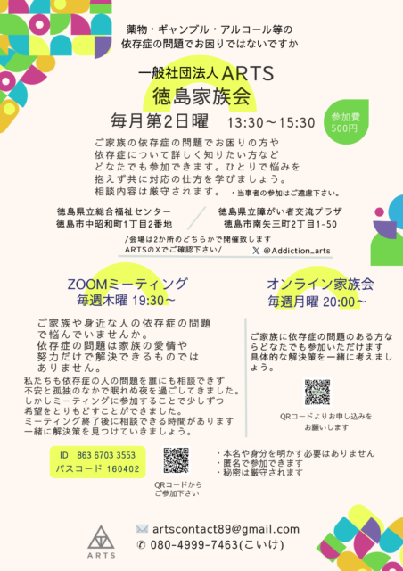 一般社団法人 ARTS 依存症 徳島家族会のご案内